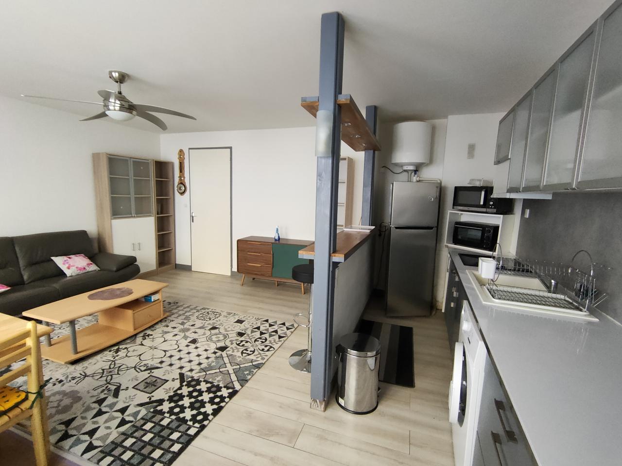 Au rez-de-chaussée d'une résidence sécurisée, dans rue calme, spacieux T2 meublé comprenant une entrée avec placard, un séjour avec cuisine ouverte, une chambre avec une pièce attenante et une salle d'eau avec W.C.